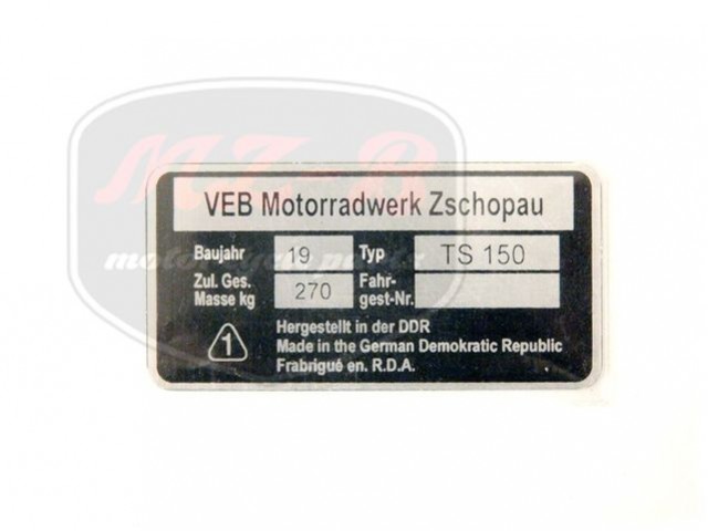 MZ/TS 150 NAMEPLATE /TS150/