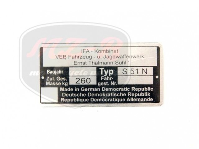 SIMSON 51 NAMEPLATE /S51N/
