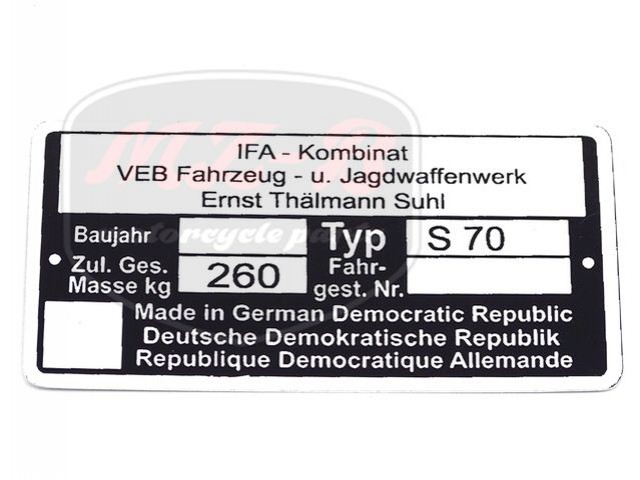 SIMSON 70 NAMEPLATE /S70/